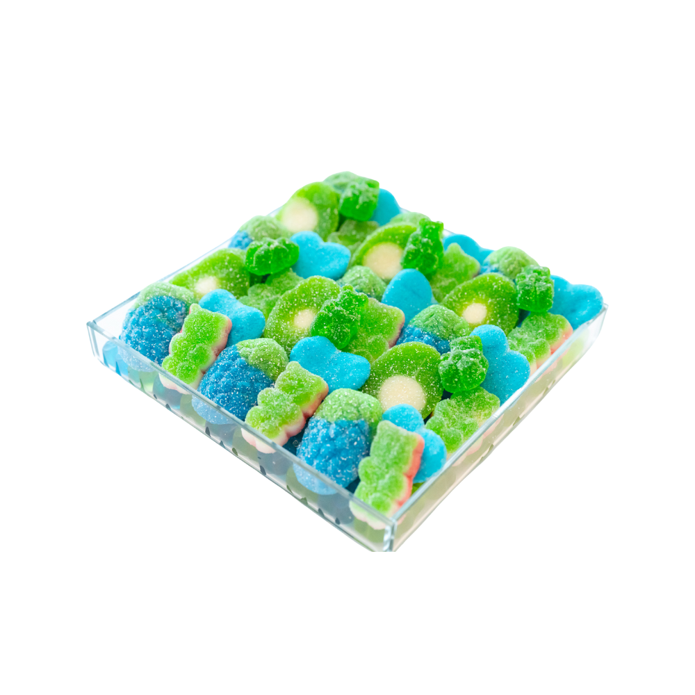 These blue raspberry gummies give you major main character energy. They are sour in flavor, soft in texture, and gorgeous to look at. Add sour kiwis, green apples and sweet blue raspberry to the mix and you have a candy board delight. The perfect gift for the sweet tooth in your life.