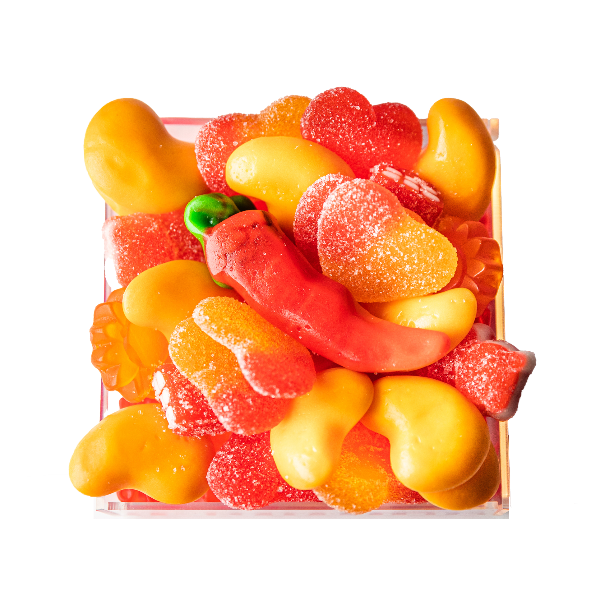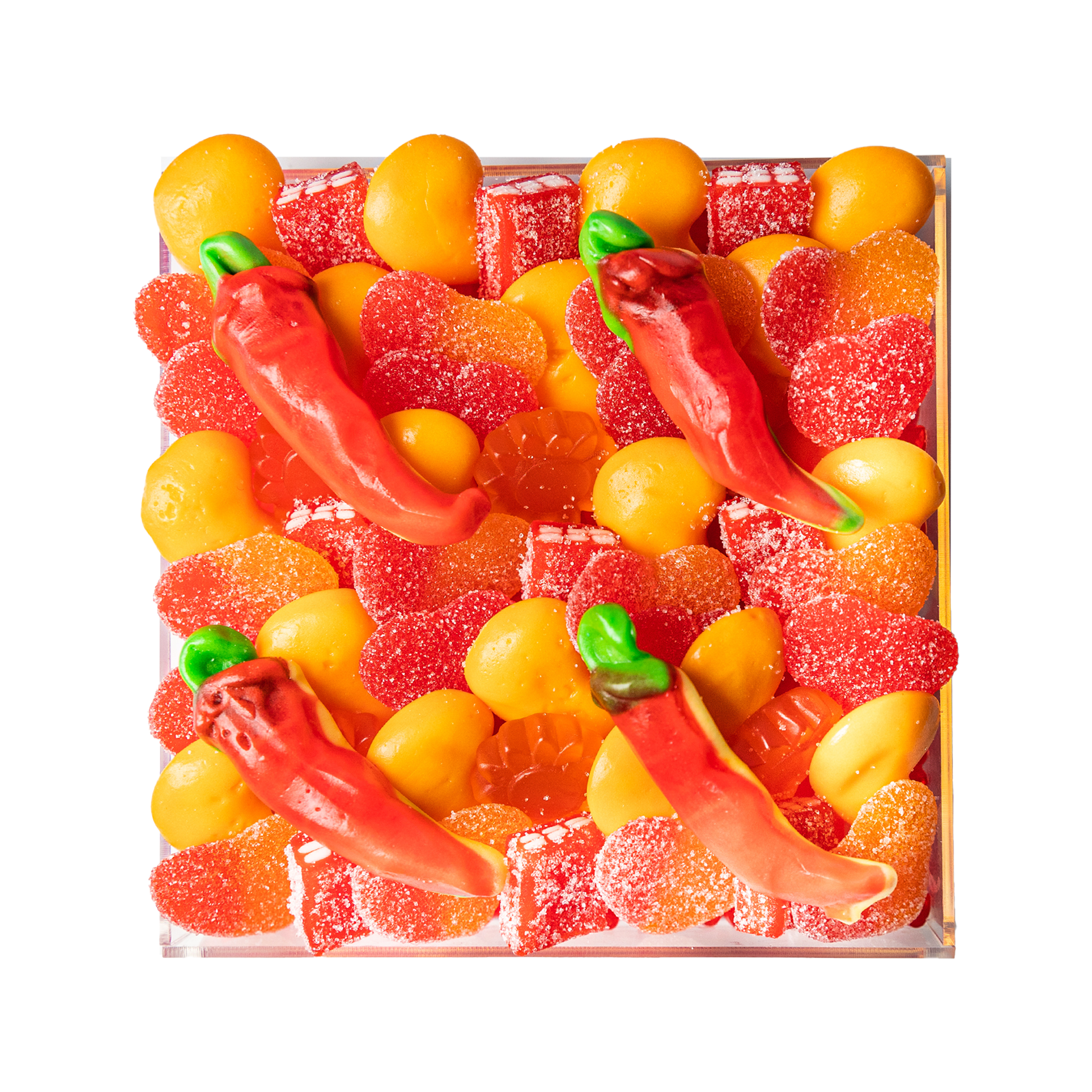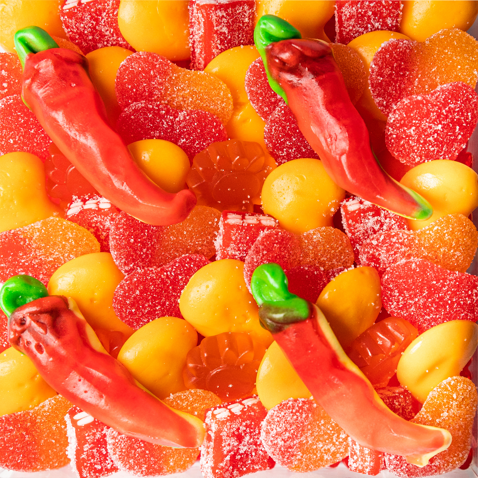 If you love heat, Hotlanta is the candy board for you! Enjoy sweet and spicy flavors that'll make your taste buds tingle, with spicy mango gummies, spicy peppers, and other deliciously hot treats. Some like it hot, but Hotlanta is the only way to get it!