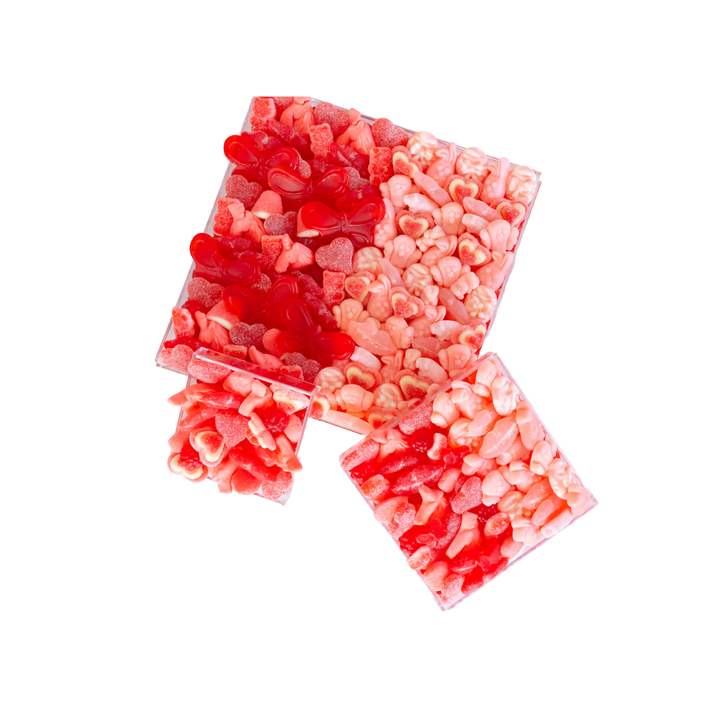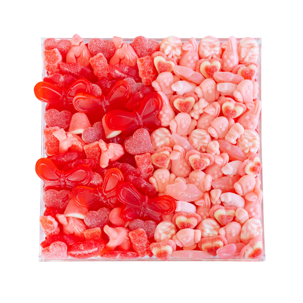 Featuring our flagship colors – ruby red and pink – our Signature candy board is a delicious and thoughtful way to show you care. Available in three sizes and lined with a surprise selection of sweet and sour gummy bears, the Signature board signifies courage, charisma and connection. Wish someone well with this delectable candy board gift.