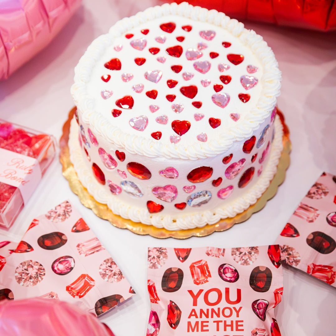 This Valentine’s Day candy bag features chic pink packaging accented with bold red ruby gems and our favorite modern love note: “You Annoy Me the Least.” It’s playful, elevated, and perfectly on brand. It’s the perfect nod to your BFF, your ride-or-die, your favorite person—romantic or not.